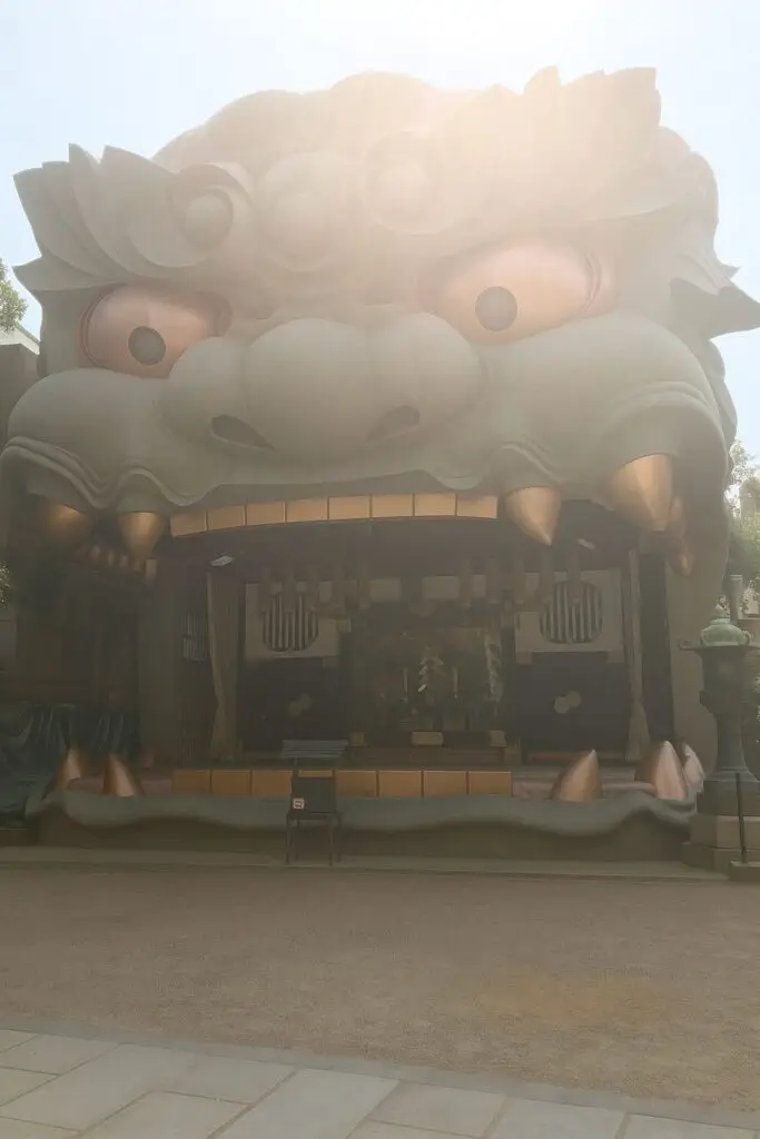 Namba Yasaka Shrine is zonder twijfel een van de meest unieke shrines die je in Japan kunt tegenkomen. Wat deze plek zo bijzonder maakt, is het enorme altaar in de vorm van een gigantische leeuwenkop, compleet met open bek en felle ogen. Sta je ervoor, dan ga je versteld staan van de grote ervan. Het is een indrukwekkende en prachtige shrine (tempel).