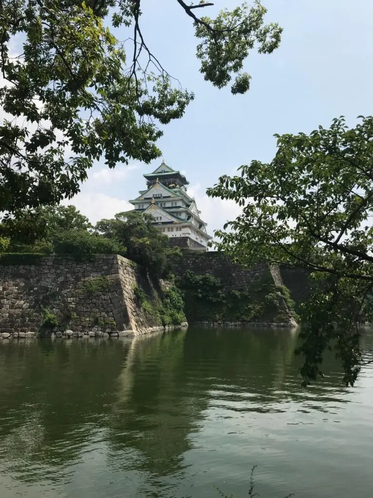 Mocht je helemaal uitgeput zijn door de drukte en indrukken van Dotonbori, dan is een uitstapje naar het Osaka Kasteel precies wat je nodig hebt. Zodra je de hectiek achter je laat en richting het kasteel wandelt, voel je het meteen: rust. Het kasteel ligt midden in een uitgestrekt park, omringd door brede paden, grote vijvers, oude bomen en overal kleine bankjes waar je gewoon even kunt zitten en ademen.